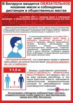 В Беларуси с 9 октября 2021 г. ношение масок и соблюдение дистанции в общественных местах станет обязательным для всех. Данная норма внесена специалистами Министерства здравоохранения Республики Беларусь в санитарные нормы и правила, касающиеся профилактики гриппа и COVID-19.
